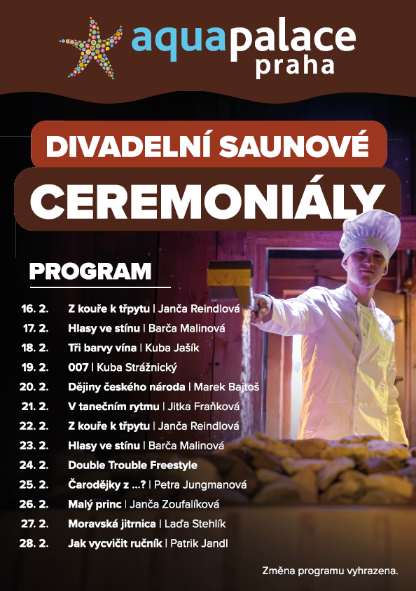 Každé představení je originální – od uvolňujících relaxačních ceremoniálů přes humorné scény až po napínavé příběhy s nečekaným koncem. Novinkou je také program saunování cestování inspirovaný tradicemi a místy z různých koutů světa. Saunéři si sami volí kostýmy, připravují scénáře a pečlivě vybírají hudbu, aby byl váš zážitek co nejintenzivnější. Každý měsíc navíc uvádíme novou divadelní premiéru, takže se program nikdy neomrzí a vždy vás čeká něco nového!